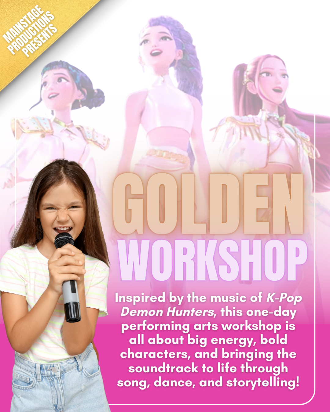 Get ready to shine at MainStage’s Golden Workshop, where we’ll show you how to Takedown the stage with confidence, teach you How It’s Done with sharp, precise moves, and bring energy and fun as we dance along to Soda Pop. You’ll shine like never before with Golden, master timing and coordination as we plan our Strategy, step into the spotlight and become Your Idol, explore your creativity with Free, and finish strong as we show you What It Sounds Like, blending style, energy, and performance for an unforgettable experience!